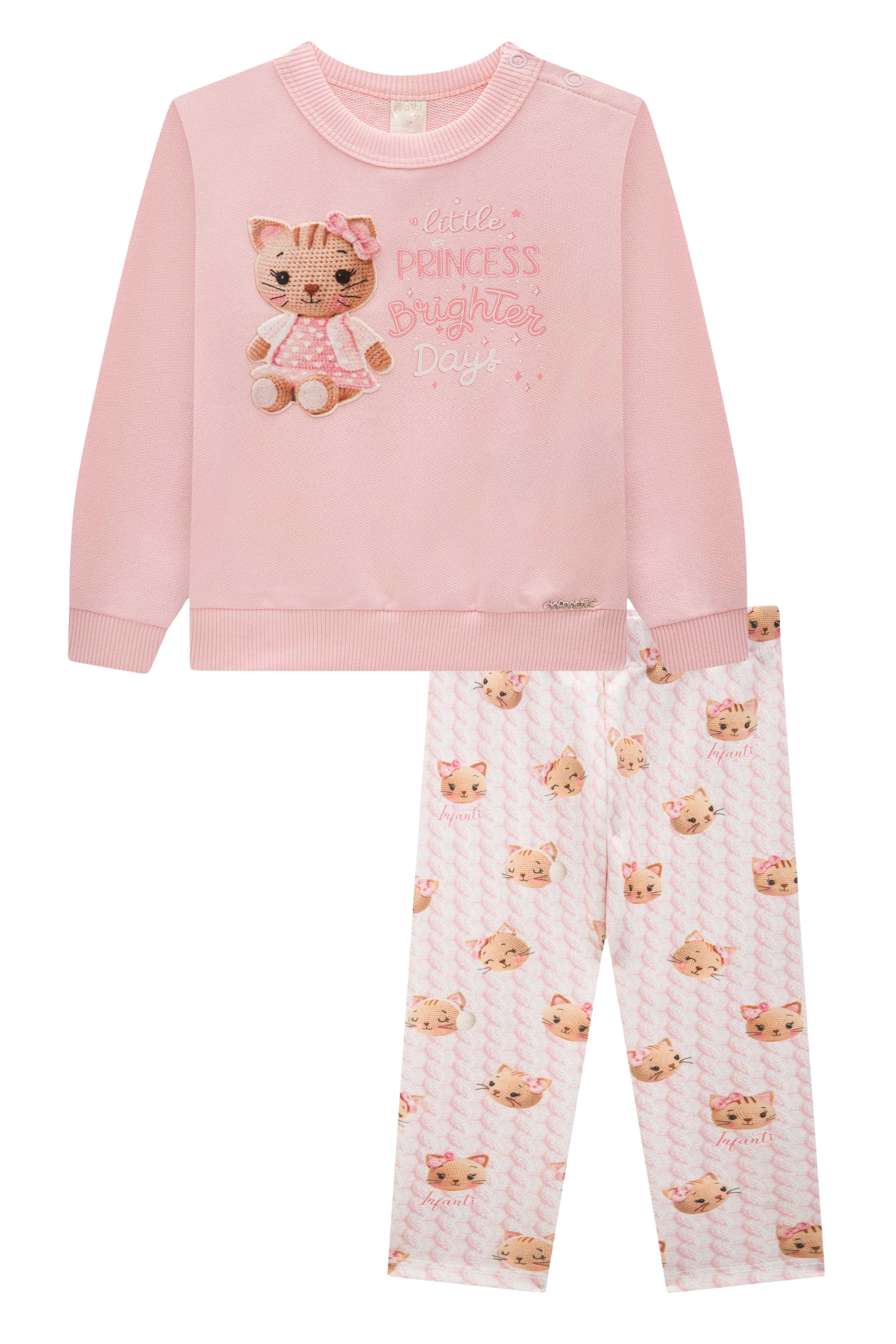 Conjunto de Blusão em Moletom sem Pelúcia e Calça Legging em Fly Tech 90950 Infanti Bebê Menina
