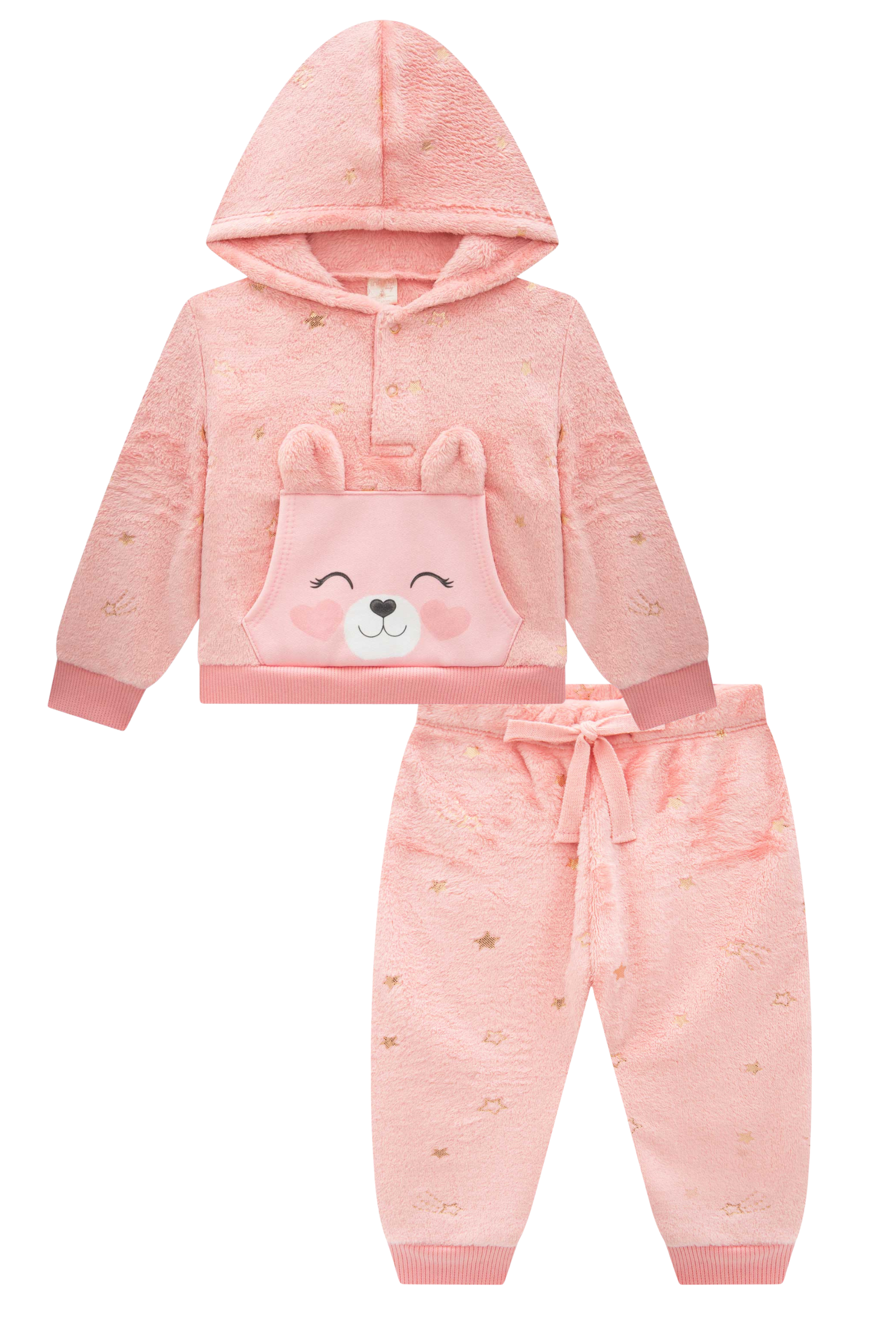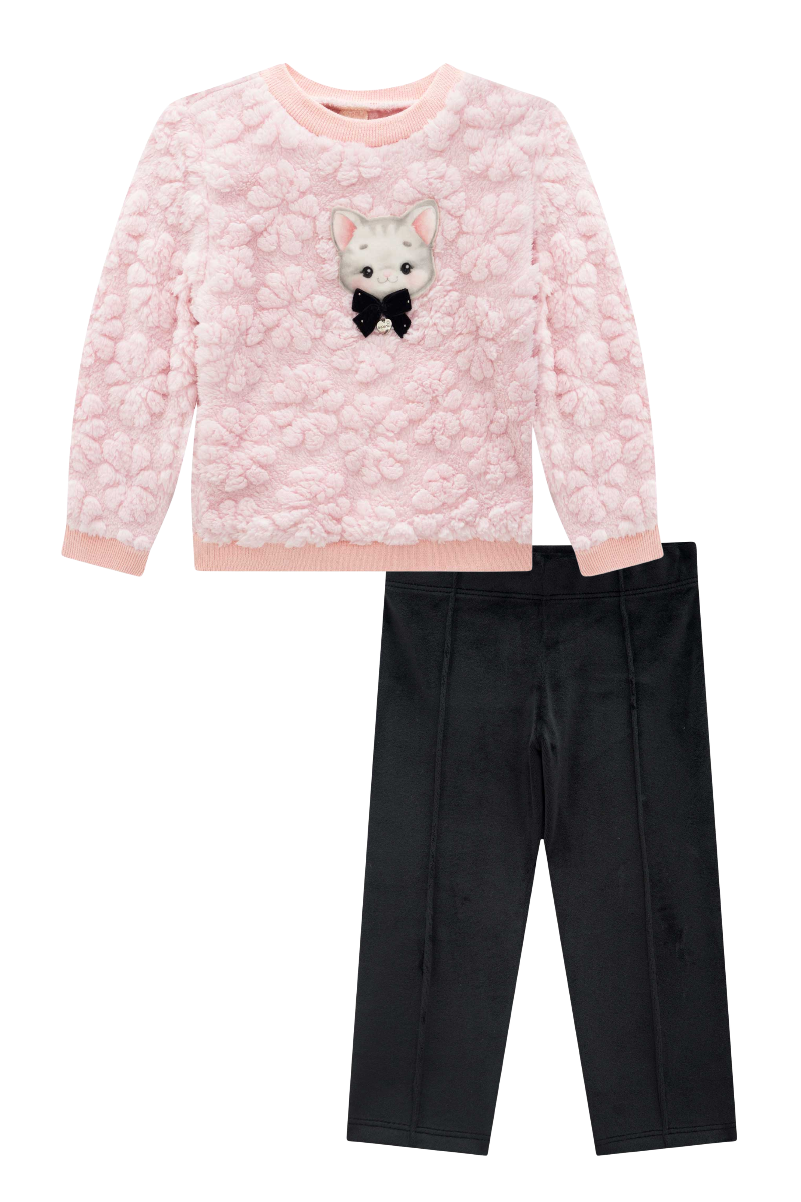 Conjunto de Blusão em Moletom com Pelúcia e Calça Legging em Malha Cotelê 89974 Infanti Bebê Menina